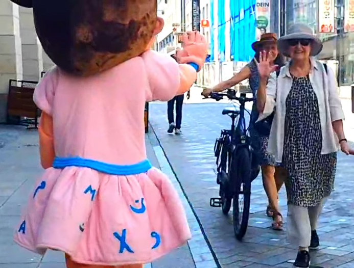 Die Präsenz dauert in der Regel zwei bis drei Stunden und richtet sich nach Art und Ziel der jeweiligen Veranstaltung. Die beiden interaktiven Figuren werden von einem mehrköpfigen Team begleitet, das neben der Darstellung auch organisatorische und koordinierende Aufgaben übernimmt, um einen sicheren und reibungslosen Ablauf zu gewährleisten.